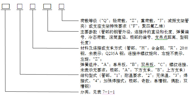 表7-1-1 华东电力设计院管道支吊架的分类和命名