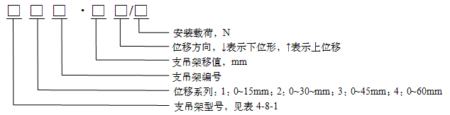 根据计算工作载荷按表4-8-4的标准载荷与计 算工作载荷相近的原则加以圆整,确定吊架编号 |